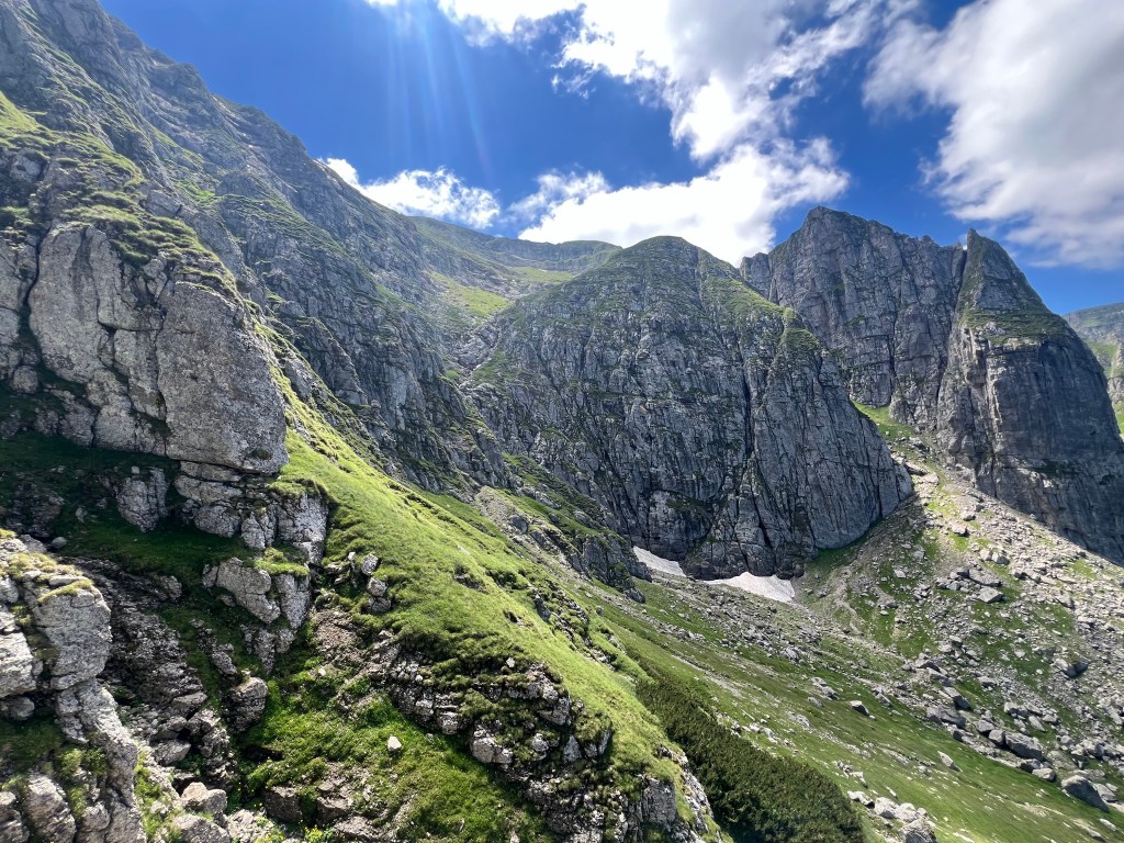 - În față, traseul continuă spre Vârful Omu – un traseu pe care l-am făcut anul trecut și care rămâne unul dintre preferatele mele.