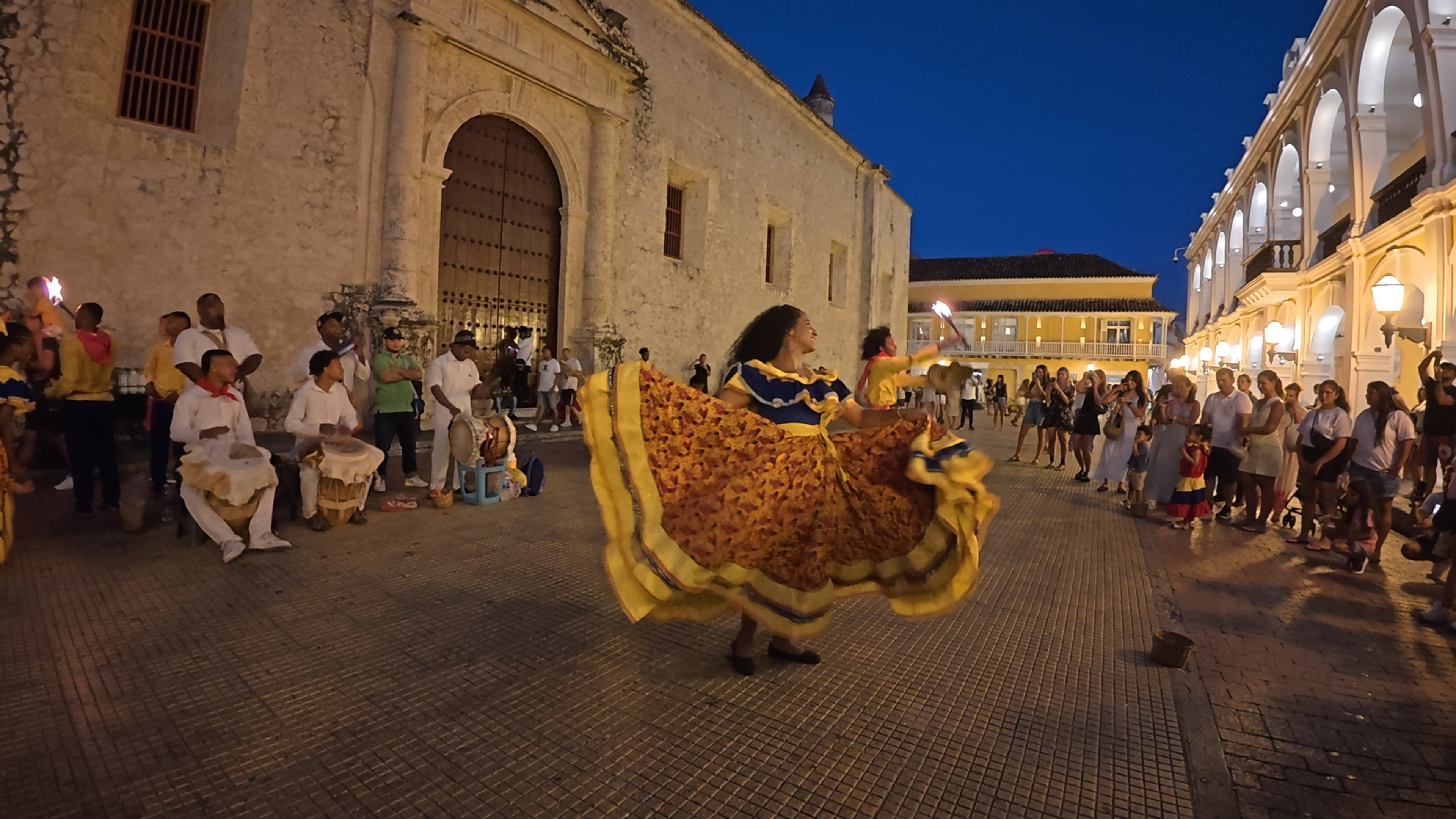 După ce soarele a coborât, Cartagena a început să pulseze de energie. M-am plimbat prin orașul luminat, până când am dat peste un spectacol de dans stradal – un moment spontan, plin de pasiune și ritm.